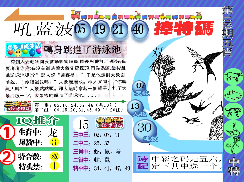 109期正版天机诗 五九旺出三入功 。送:鼠马蛇羊龙。 推荐:3 4 0头+蓝红波(开?00) |